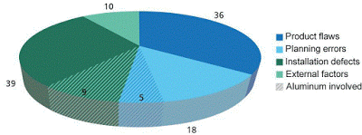 圖6統(tǒng)計99個系統(tǒng)在故障時的壽命,可以發(fā)現(xiàn)大部份發(fā)生在前五年,尤其最多一開始就發(fā)生問題,這些主要是由安裝、設(shè)計錯誤造成,以及元件的先天缺陷,特別是逆變器。以下幫大家整理了報告裡提到的重要缺陷問題與案例: